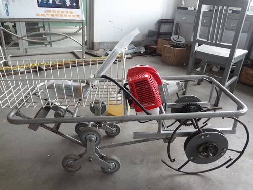 这是一款能够在平地、山坡、楼梯等不同路径中行走攀爬的机械,主要用于楼层货物搬运。此机器车应用杠杆、弹簧、轴套的特殊连接,曲柄连杆传动原理构成阶梯攀爬机构,通过机械自身的重量,调节机械在坡地、阶梯工作时的平衡;也可通过似千斤顶原理实现手工调节。在阶梯攀爬时可通过控制重心转移系统将整个车身保持平稳状态。